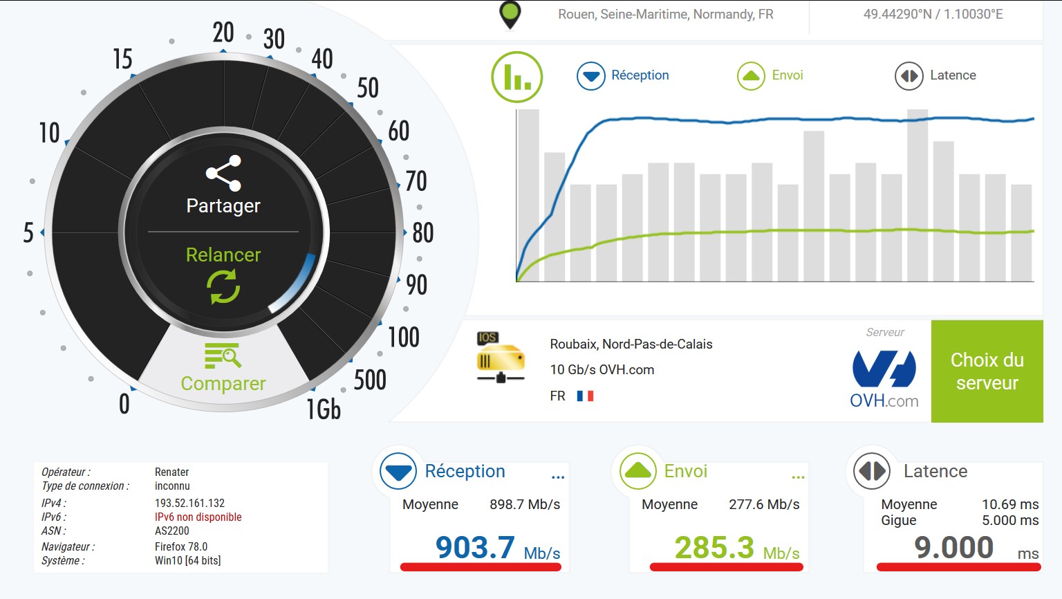 - Si vous avez plus de 25 Mb/S en moyenne : la qualité de votre connexion est excellente, vous n'aurez probablement aucun problème lié au débit
