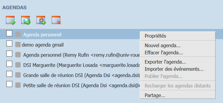 - Dans votre webmail, faites un clic droit sur votre agenda personnel, puis “partage”